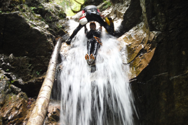 The Predelica canyoning tour is made for experienced canyoneers or climbers. It is physicaly and mentaly challenging, with a whole day of high and long rope lowerings, jumps and slides. Pure adventure!